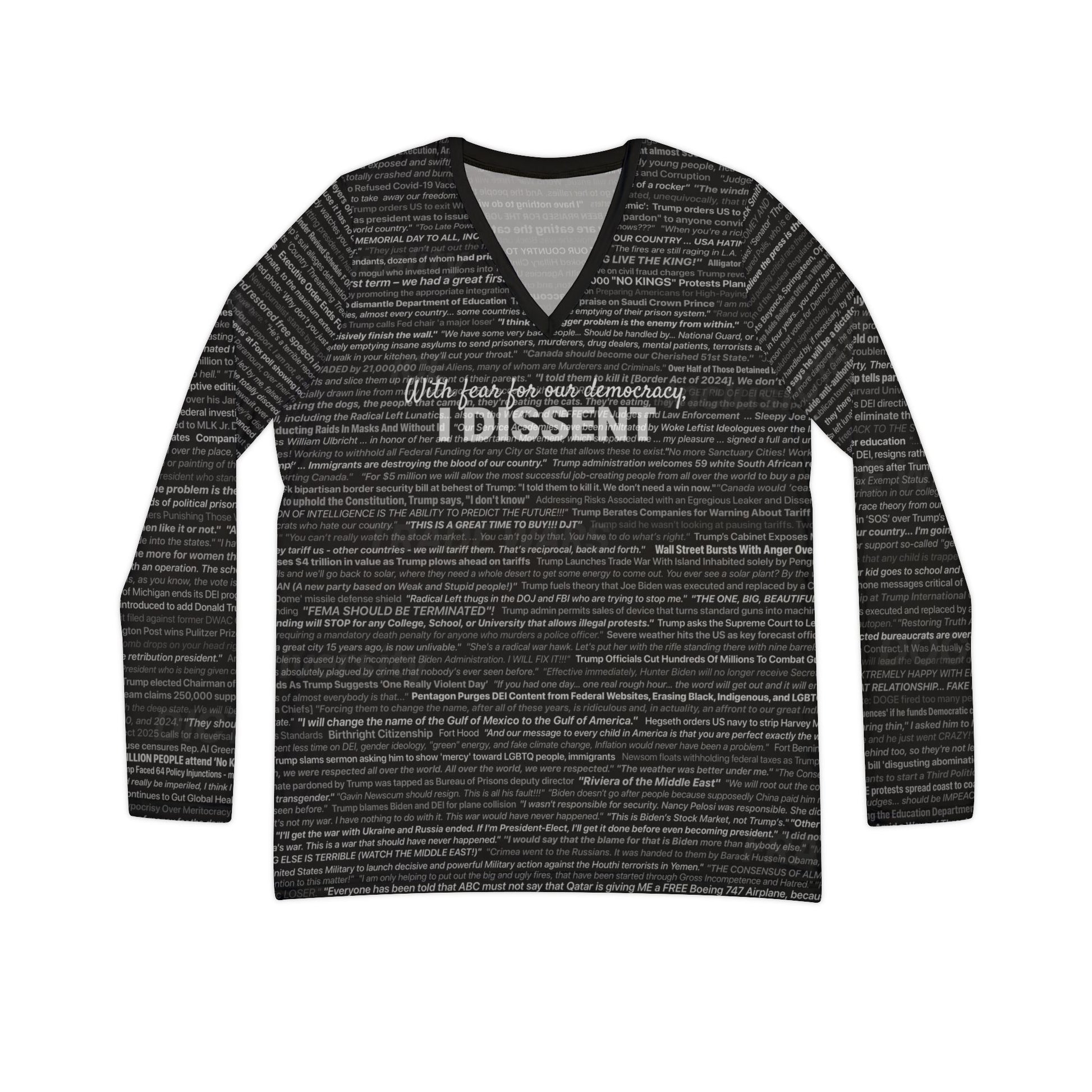Anti-Trump V-neck Top that Says it All - In Trump's own words - overlaid with infamous RBG's, "With fear for our democracy, I DISSENT")